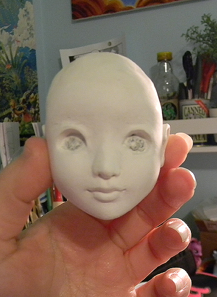 So, I’ve got the lips looking more natural now, and I brought down the nose a little and gave it some more shaping. I also started rounding out the cranium in the hopes that I can get wigs to fit better on her since her head shape was a little off. My only concern with rounding out the cranium is that her head is getting a bit larger and I worry that her head may be coming more MSD size and perhaps a bit too large for her body. I won’t really know until I get a chance to lay out the doll again though which won’t happen until after I get the last of my comic work done for the week (probably Sunday night or Monday). Still have a lot to do with this head, but I am still happy with the direction it is taking.